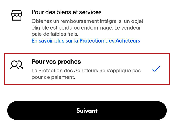 - Proceed and choose “Friends and Family”. This option should be available for personal accounts and does not include transaction fees.