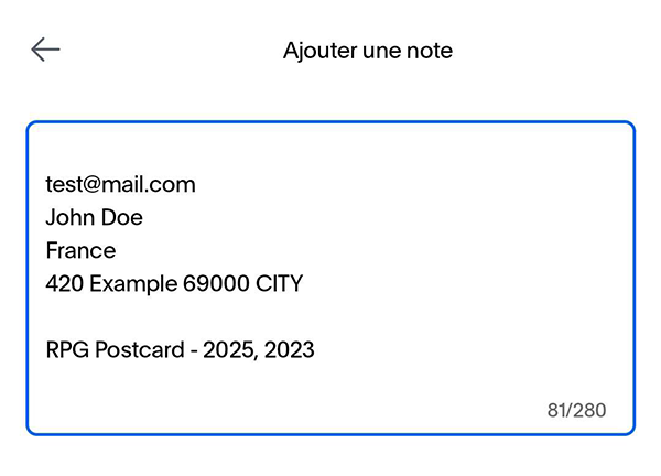 - Add a note to your payment and paste your order details.